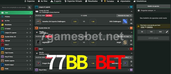 O 77BB Bet oferece uma grande seleção de opções de apostas em e-sports com probabilidades competitivas